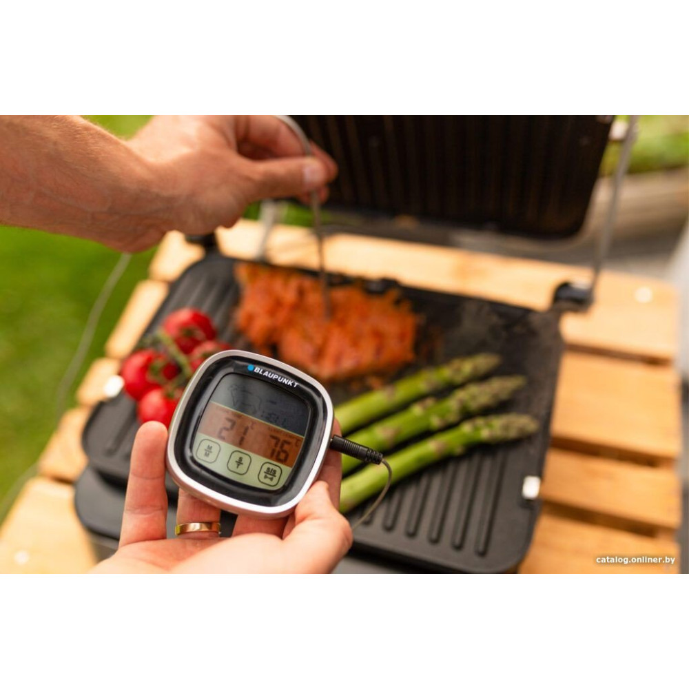 • КомплектацияЭлектрогриль со съемными двусторонними нагревательными пластинами: гладкие и ребристые. Дополнительный комплект пластин для приготовления вафель, термометр для мяса