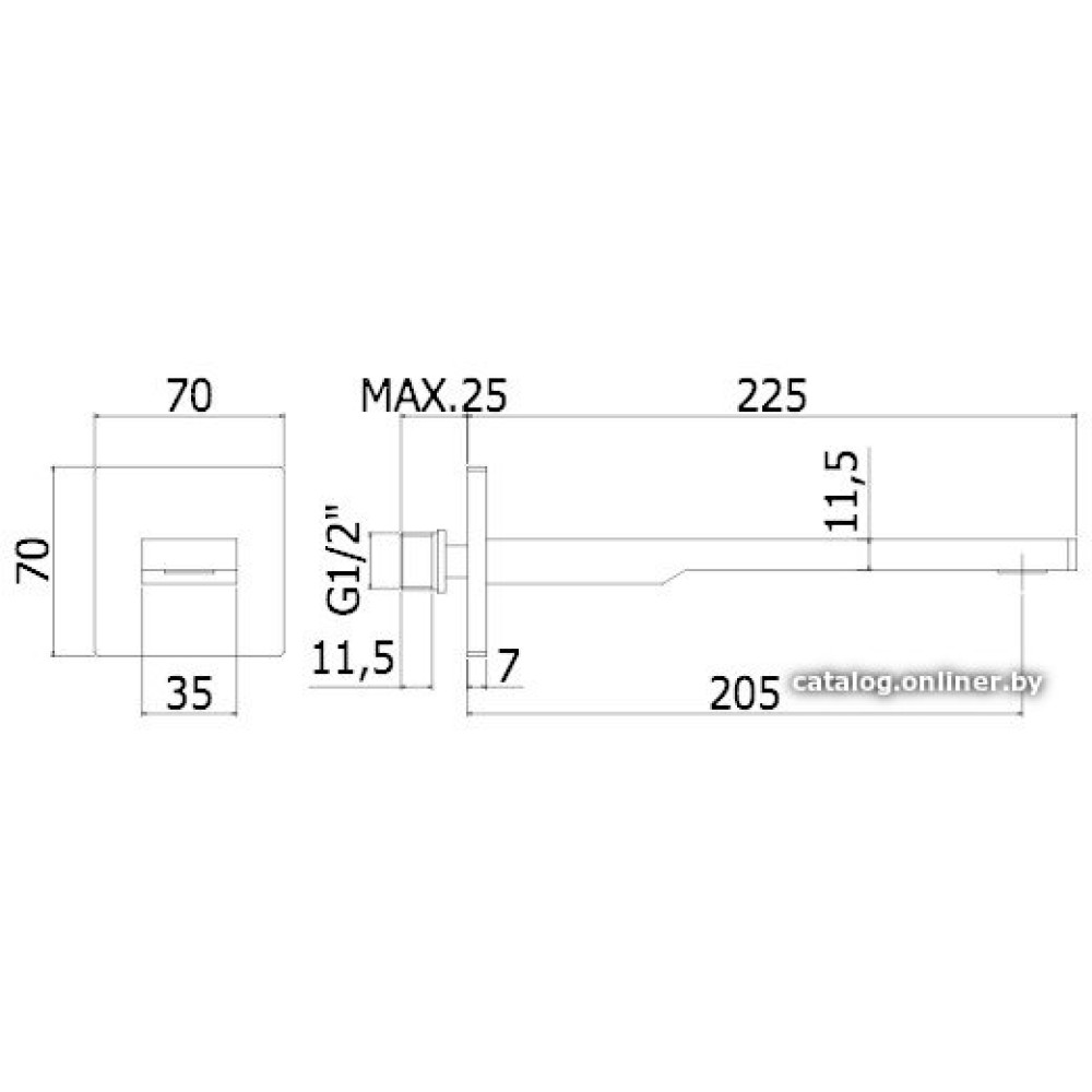 - Длина (вылет) излива205 мм