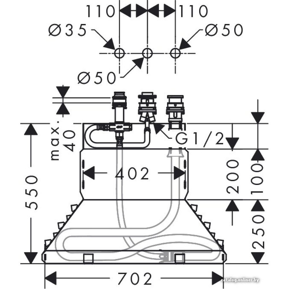 скрытый механизм для душа, монтаж на ванну или полку