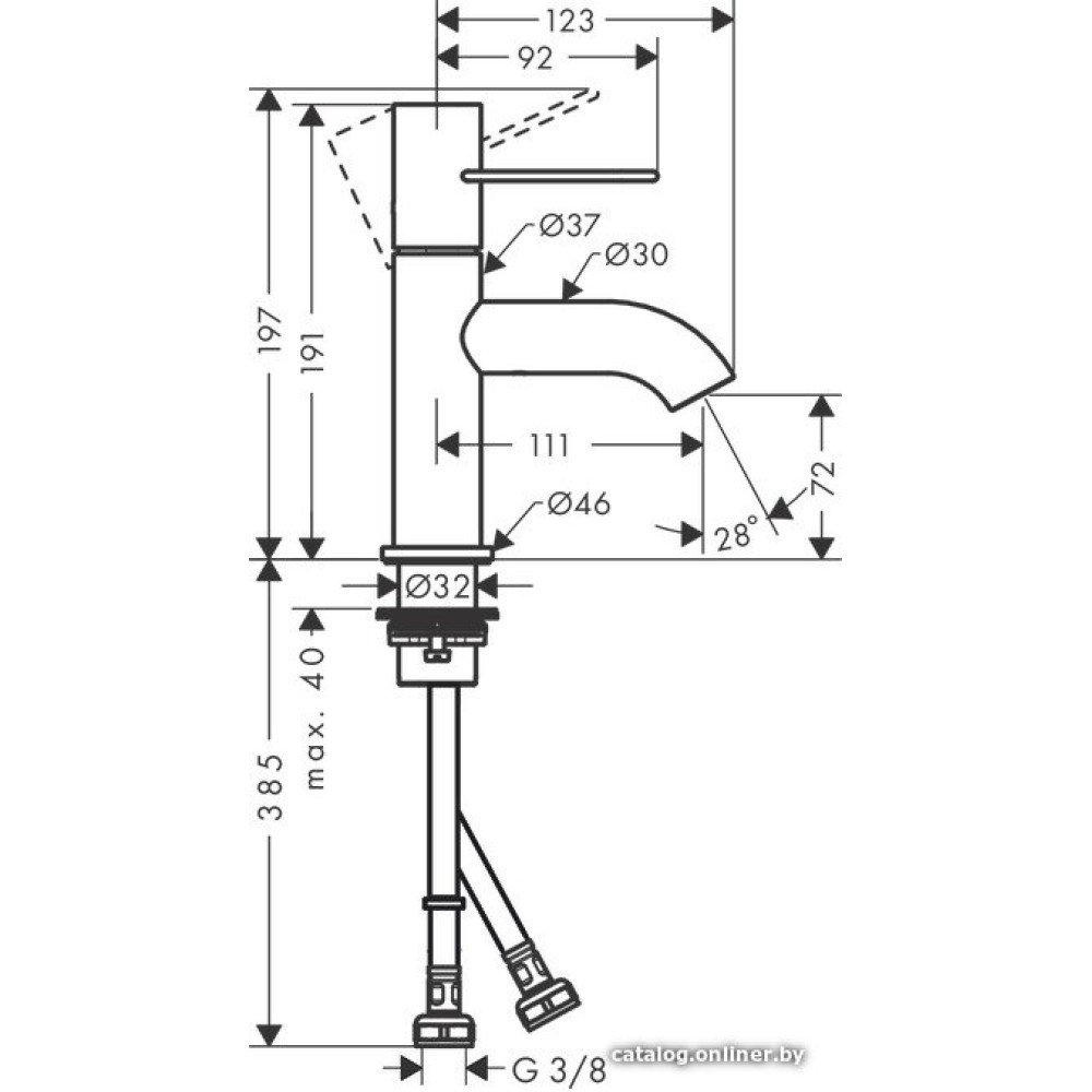 - Длина (вылет) излива111 мм