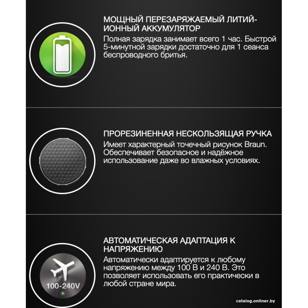 сеточная, влажное бритье, питание от аккумулятора, 50 минут автономной работы