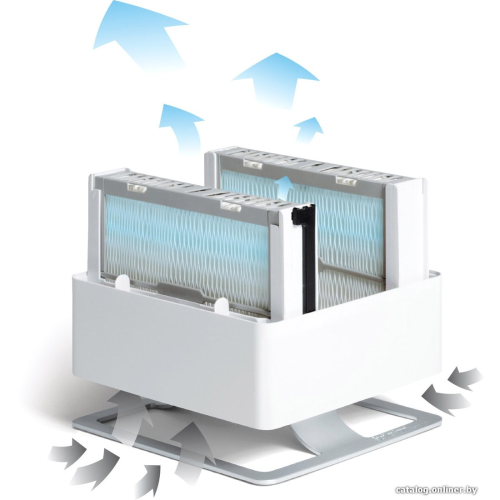 холодный пар (традиционный), помещение до 50 м², производительность 370 мл/ч, резервуар 3.5 л, гигростат, ионизация, ароматизация, шум 39 дБ, цвет белый