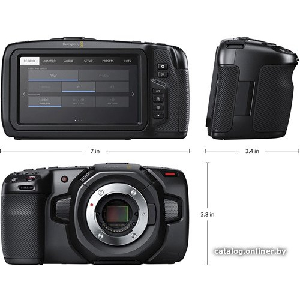 разрешения видеосъемки: 4K, матрица CMOS, сжатие ProRes/RAW, носитель: карта памяти, экран 5"