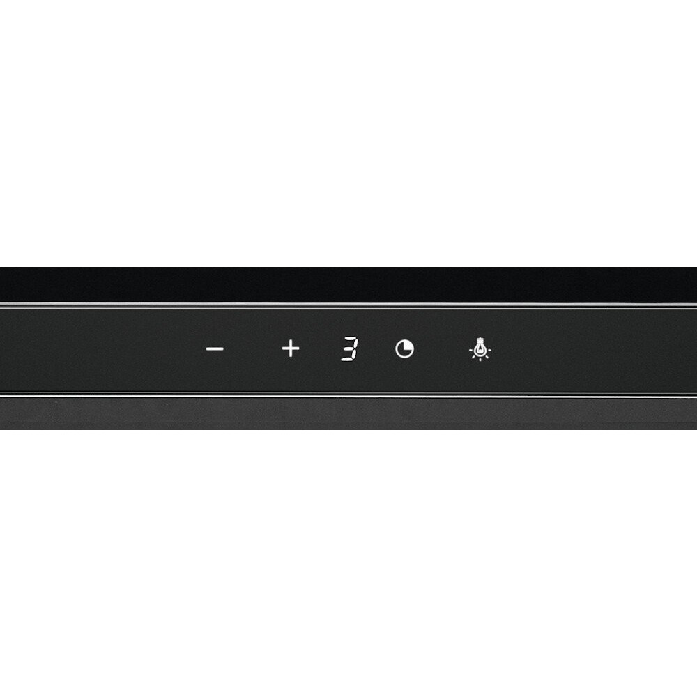 конструкция коробчатая, монтаж островной, ширина 90 см, управление сенсорное, производительность вытяжки 420 м³/ч, производительность мотора 420 м³/ч, цвет черный
