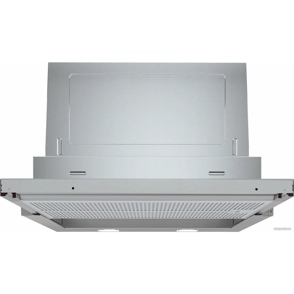 конструкция телескопическая, монтаж для встраивания, ширина 59.8 см, управление электронное, производительность вытяжки 399 м³/ч, цвет нержавеющая сталь