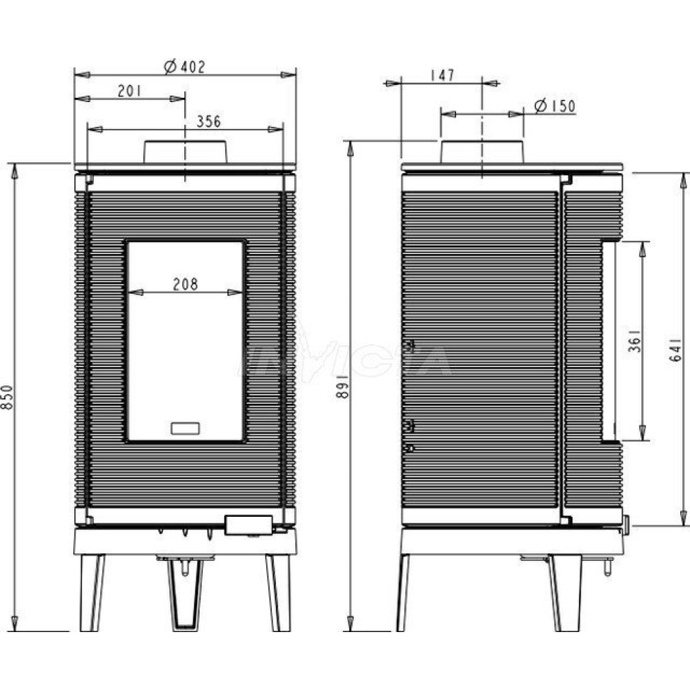 - Диаметр дымохода150 мм