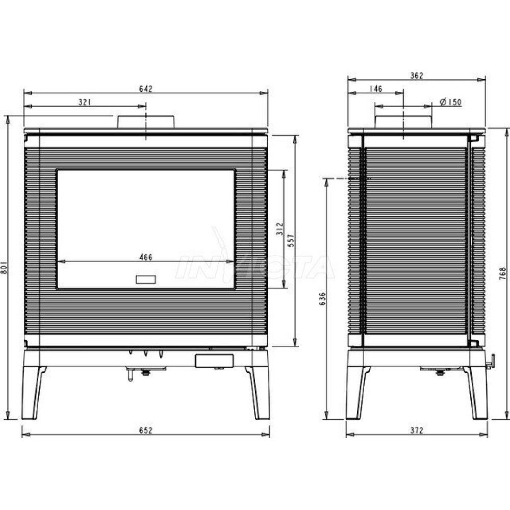 - Диаметр дымохода150 мм