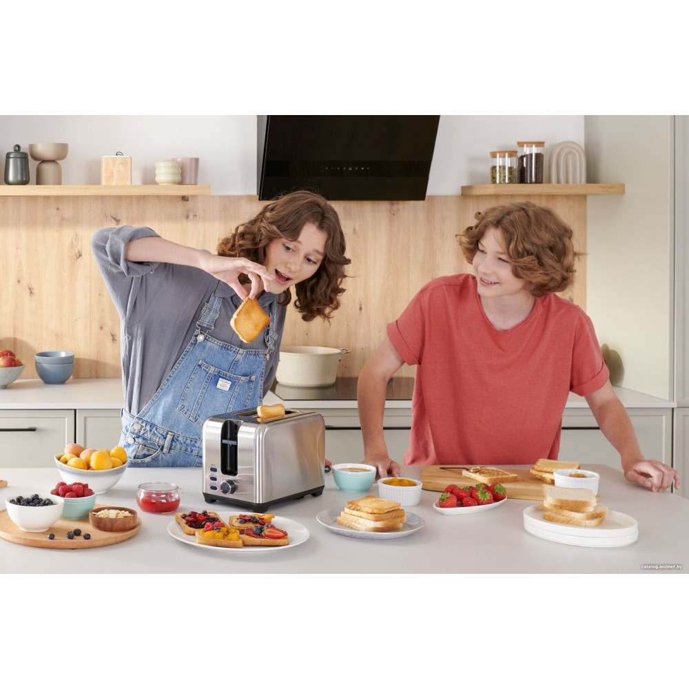 930 Вт, количество тостов: 2, корпус: металл, решетка для подогрева булочек, 7 степеней обжаривания, цвет серебристый