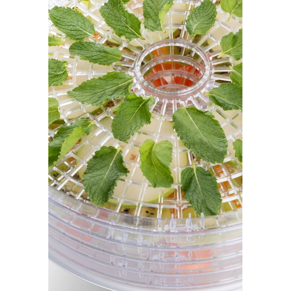 - Комплектация5 секций для сушки, 1 сетка для мелких продуктов и трав