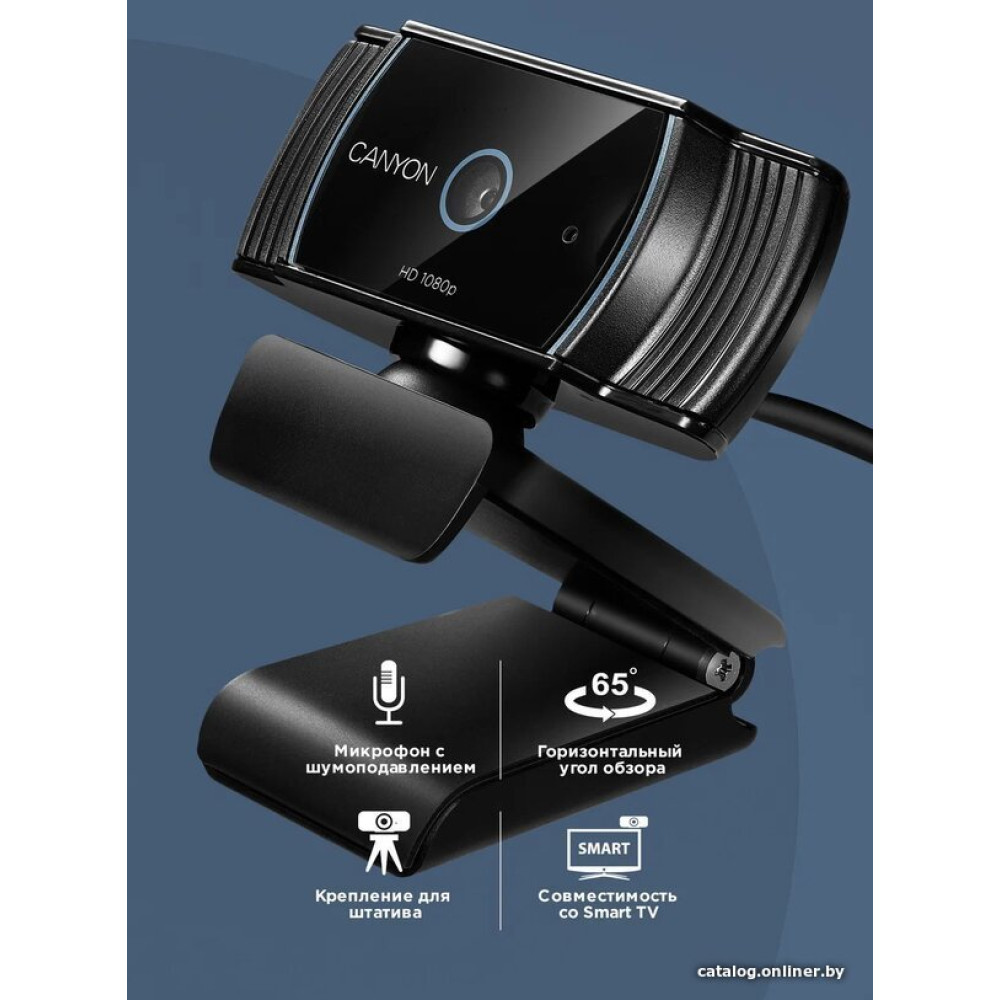 - Описание С помощью этой вебкамеры Canyon вы получите чёткое и ровное изображение с большим количеством пикселей в режиме 30 кадров в секунду. Записывайте видео и проводите онлайн-стримы даже при тусклом свете, эта вебкамера автоматически корректирует настройки при слабом освещении. Достойное качество видео обеспечивается в 1080p full-HD разрешении и 65-градусном широком ракурсе. Функции автофокуса и подавления аудиошумов обеспечат бесперебойные стрим-сессии. Камеру можно прикрепить к штативу или присоединить к Smart TV.