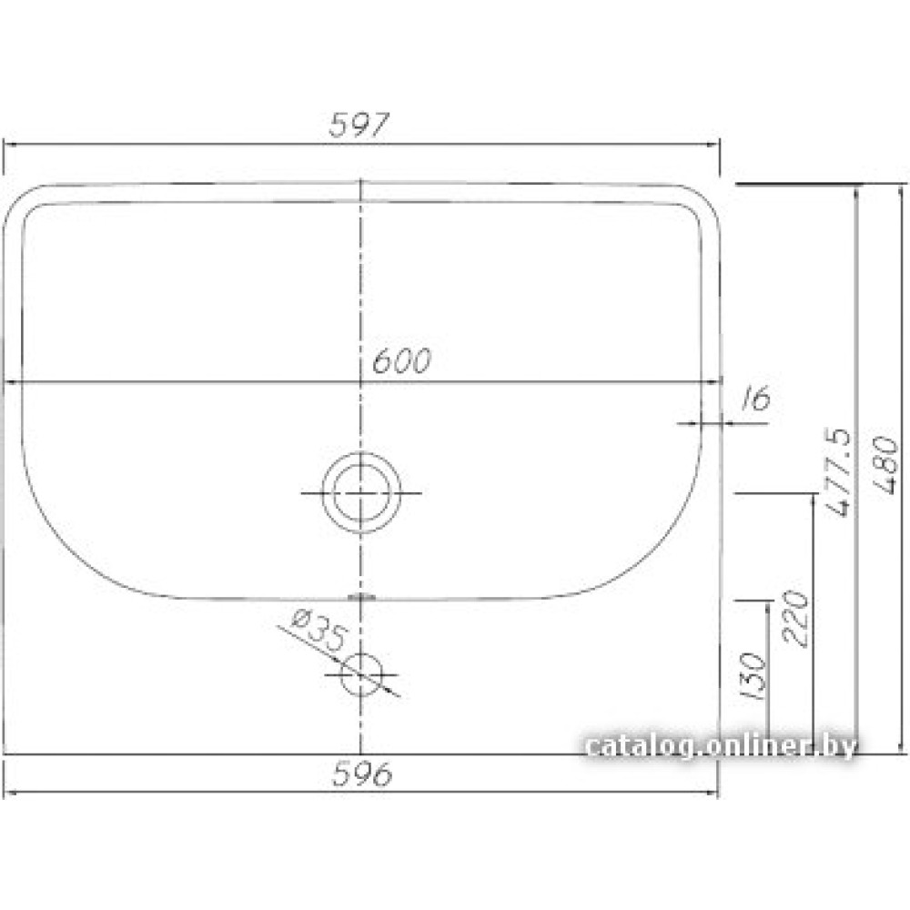 60x48 см, с одной чашей, настенный, крепление на стену/на полупьедестал/на мебельный шкаф/на столешницу