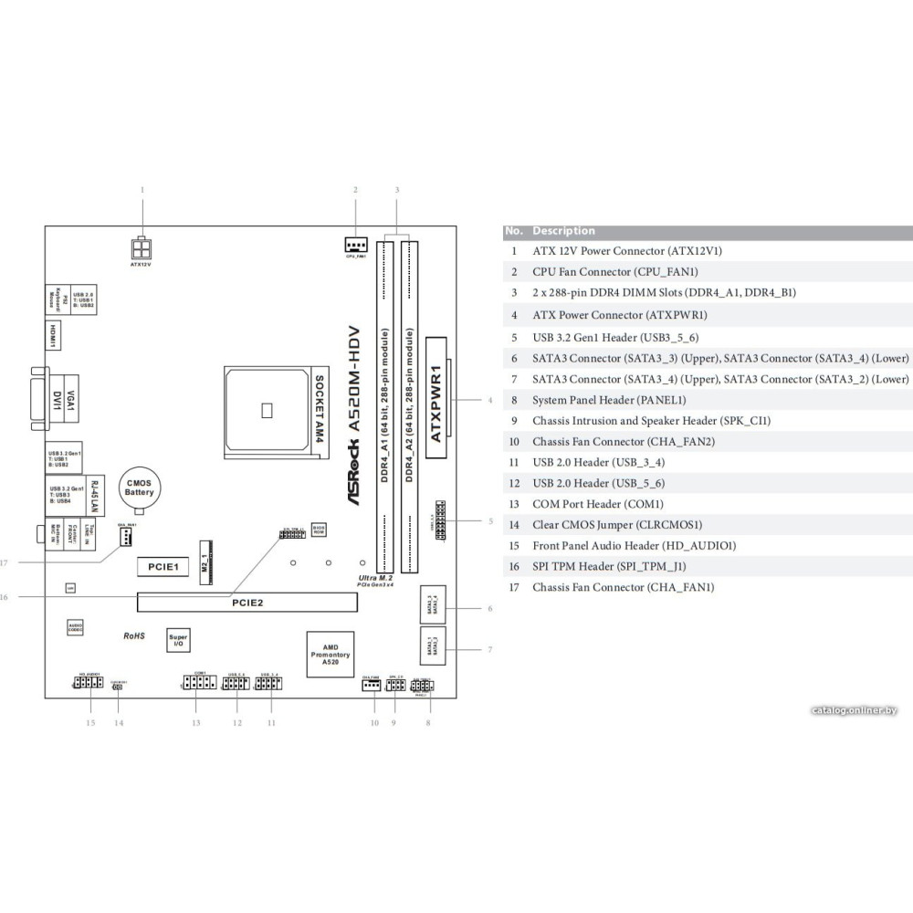 mATX, сокет AMD AM4, чипсет AMD A520, память 2xDDR4, слоты: 1xPCIe x16 3.0, 1xM.2