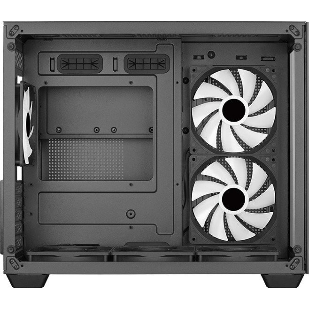 Mini Tower, БП отсутствует, для плат micro-ATX/mini-ITX, с 6 вентиляторами в комплекте, окно: закаленное стекло, видеокарта до 419 мм, охлаждение ЦП до 162 мм, пылевой фильтр - сверху/снизу, 1xUSB 2.0, 2xUSB-A 3.2 5Гбит/с, цвет черный