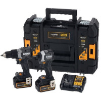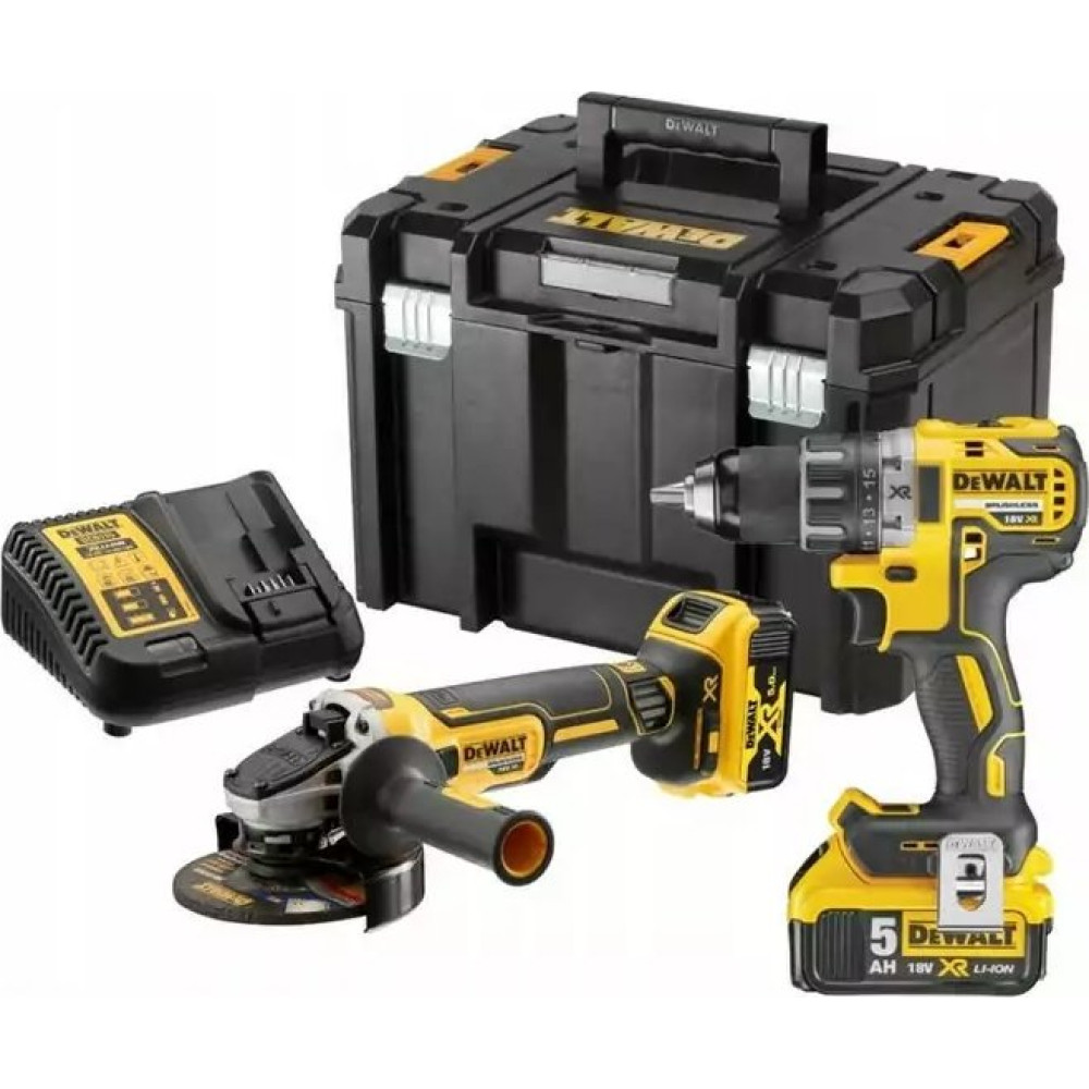 • Комплектация- дрель-шуруповерт DCD791 - угловая шлифовальная машина DCG405 - 2 литий-ионных аккумулятора XR 5,0 Ач - XR зарядное устройство - транспортировочный кейс ТСТАК VI