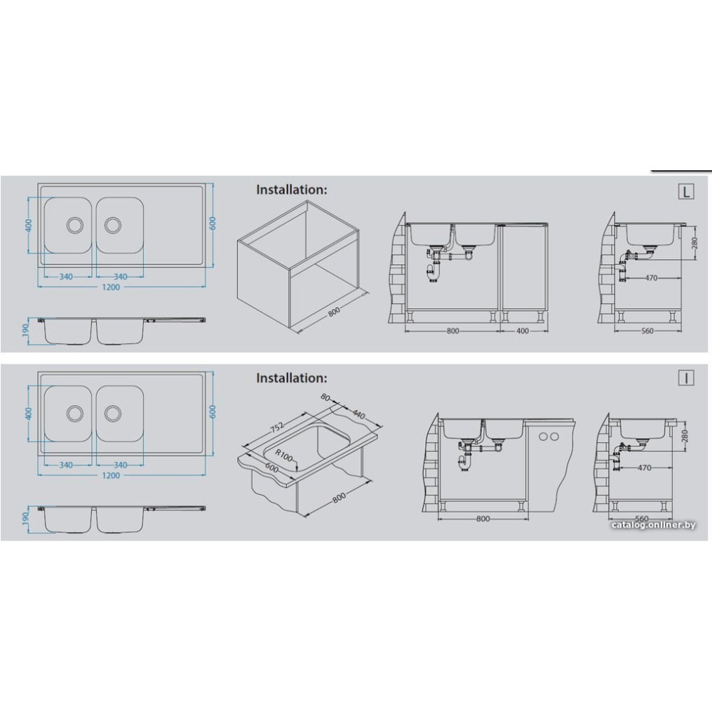 накладная, нержавеющая сталь, размеры: 120x60 см, глубина чаши: 19 см, в шкаф шириной от 80 см