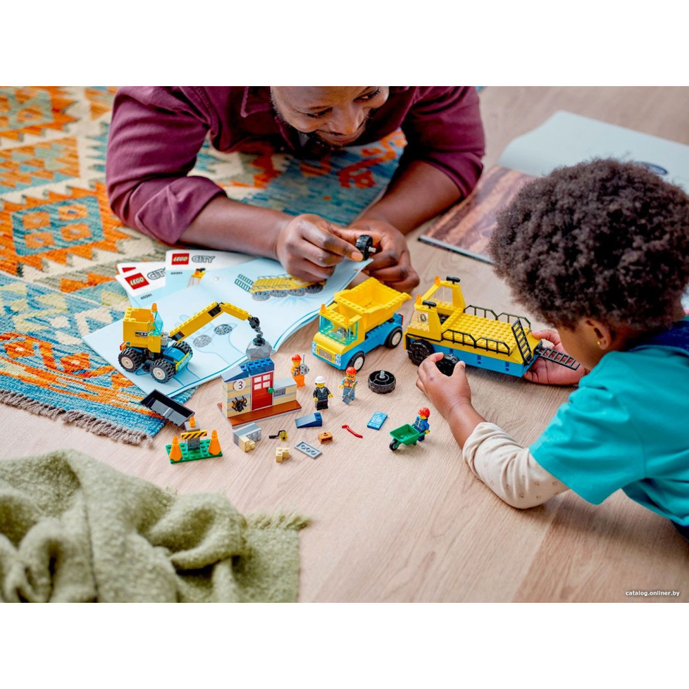 Конструктор LEGO City 60391 Строительные машины и кран с шаром для сноса