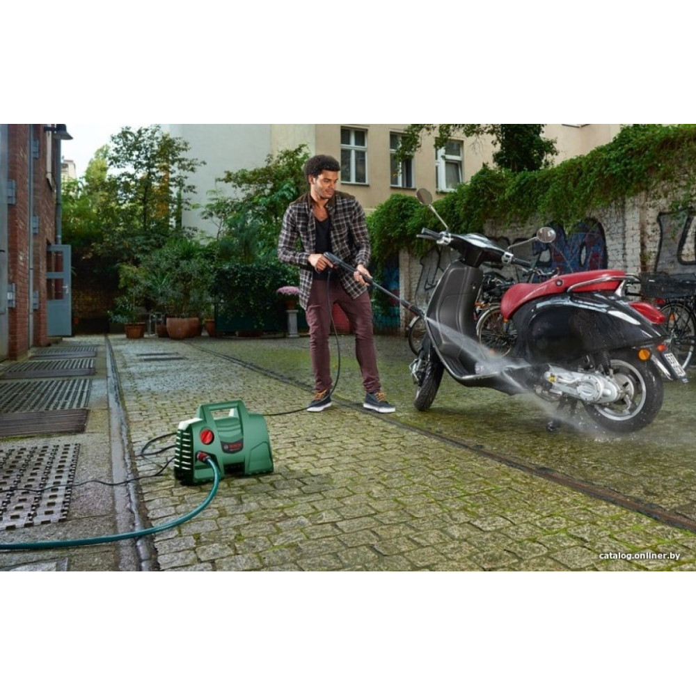 - Комплектация- Пистолет-пульверизатор Bosch; - Трубка; - Шланг высокого давления 3 м; - Регулируемая распылительная насадка; - Водяной фильтр.