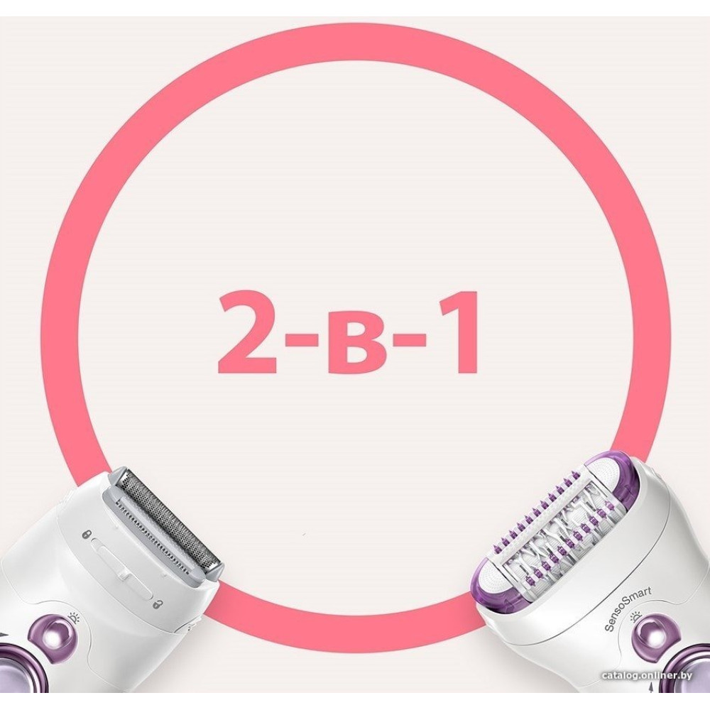 эпилятор, количество режимов: 2, массажер, насадка для бритья, триммер, подсветка, питание от аккумулятора/батареек