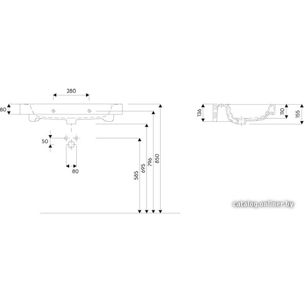 80x48.5 см, с одной чашей, настенный, крепление на стену/на мебельный шкаф