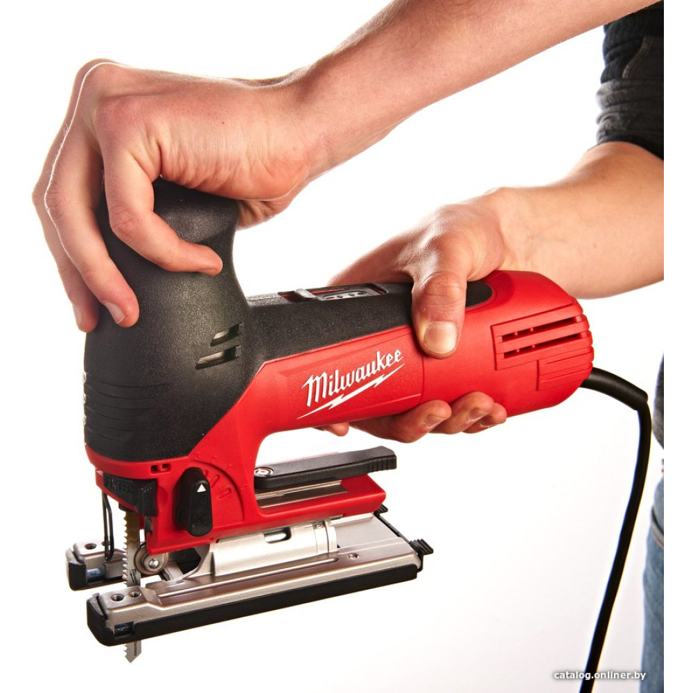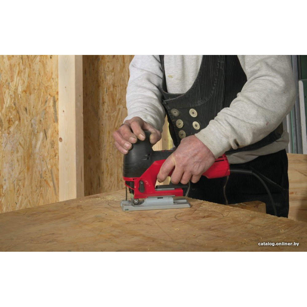 грибообразная рукоятка, питание: сеть, 710 Вт, глубина пропила: 120 мм (дерево), 10 мм (сталь), 500–2800 ходов/мин, ход пилки: 26 мм, 2.3 кг
