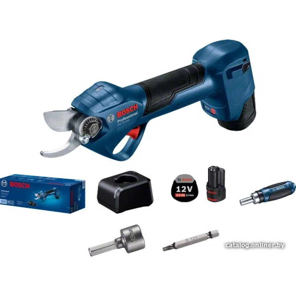 • Комплектация- Секатор; - 2 аккумулятора 12В 3,0 Ач; - Зарядное устройство GAL 12V-20; - Инструкция; - Коробка.