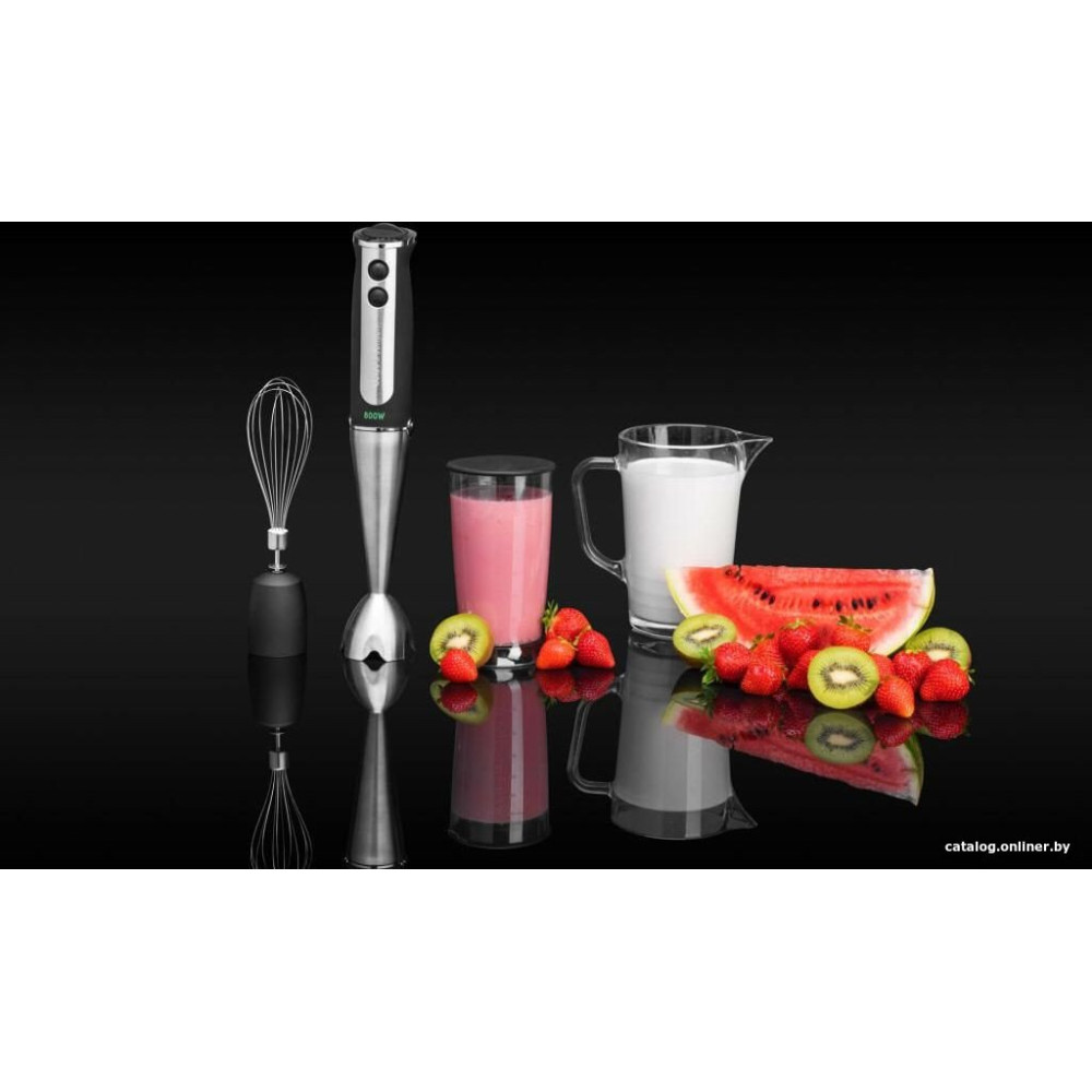 - Комплектация Погружная насадка, насадка-венчик, стакандля смешивания с мерной шкалой 600 мл, крышка