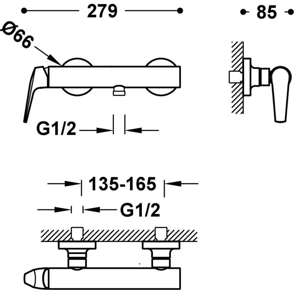 душевой гарнитур (без верхнего душа), настенный монтаж, механический смеситель, ручной душ 110 мм