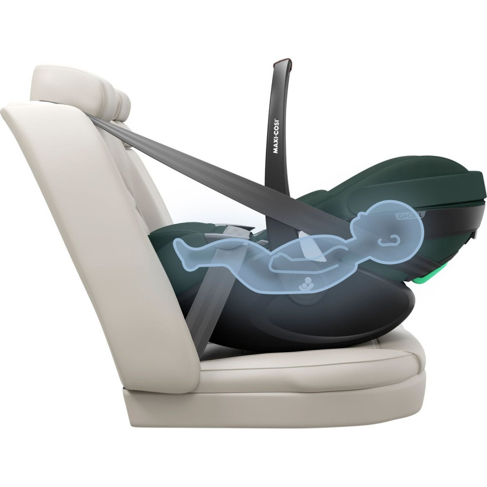 кресло, группа 0+ (до 13 кг), стандарт i-Size, рост 40-87 см, крепление посредством ремней автомобиля, ремни: внутренние трехточечные, боковая защита