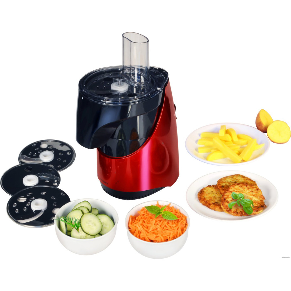 • КомплектацияАксессуар для овощерезки с тремя дисками (терка, нарезка, нарезка картофеля, пюре) Аксессуар для десерта из мороженого