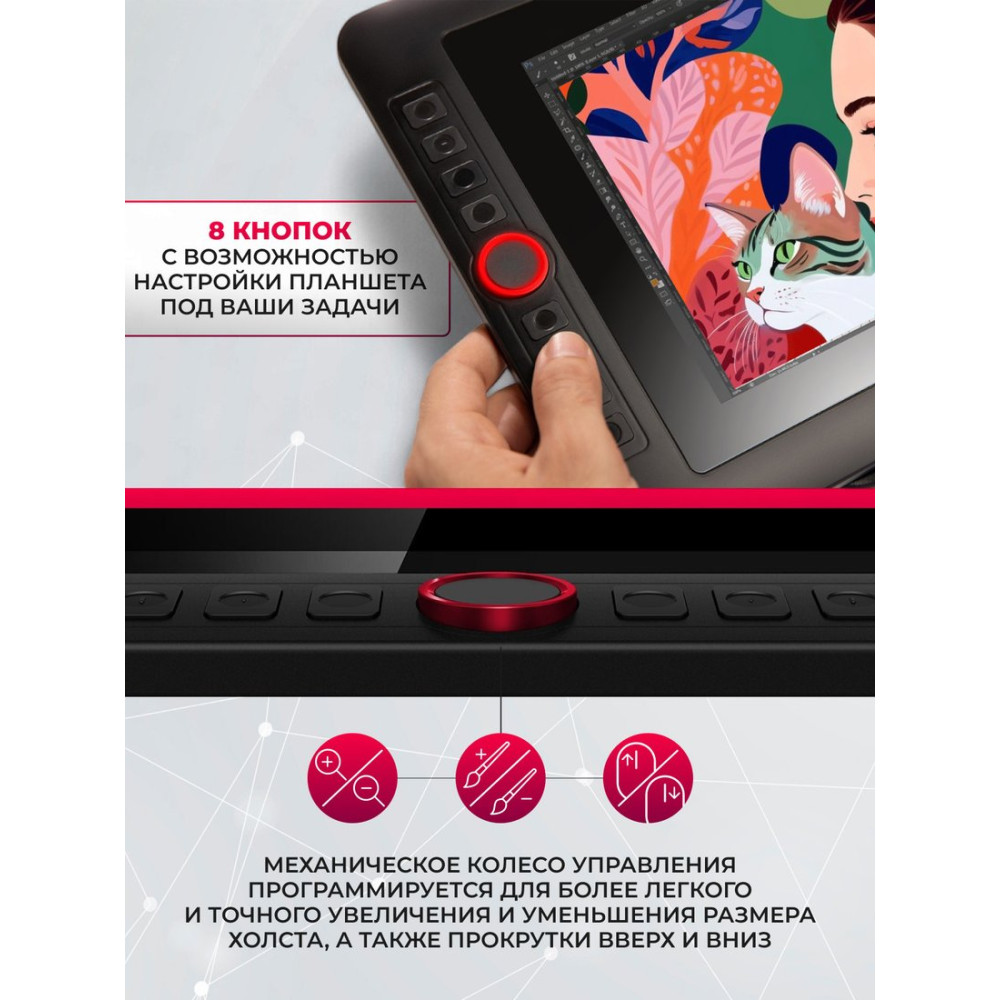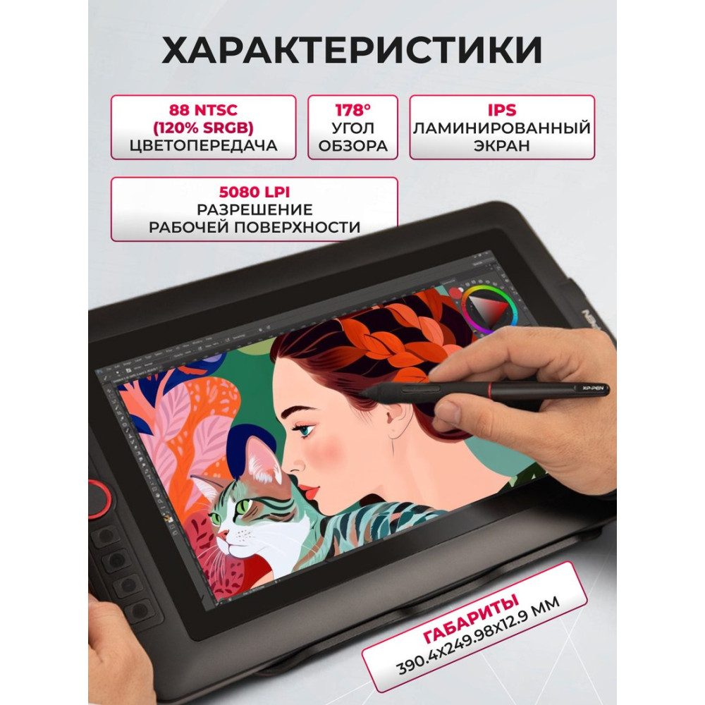 проводное подключение, перо (стилус), 5080 lpi, уровней давления: 8192, экран 13.3" 1920 x 1080, интерфейс USB Type-A/HDMI