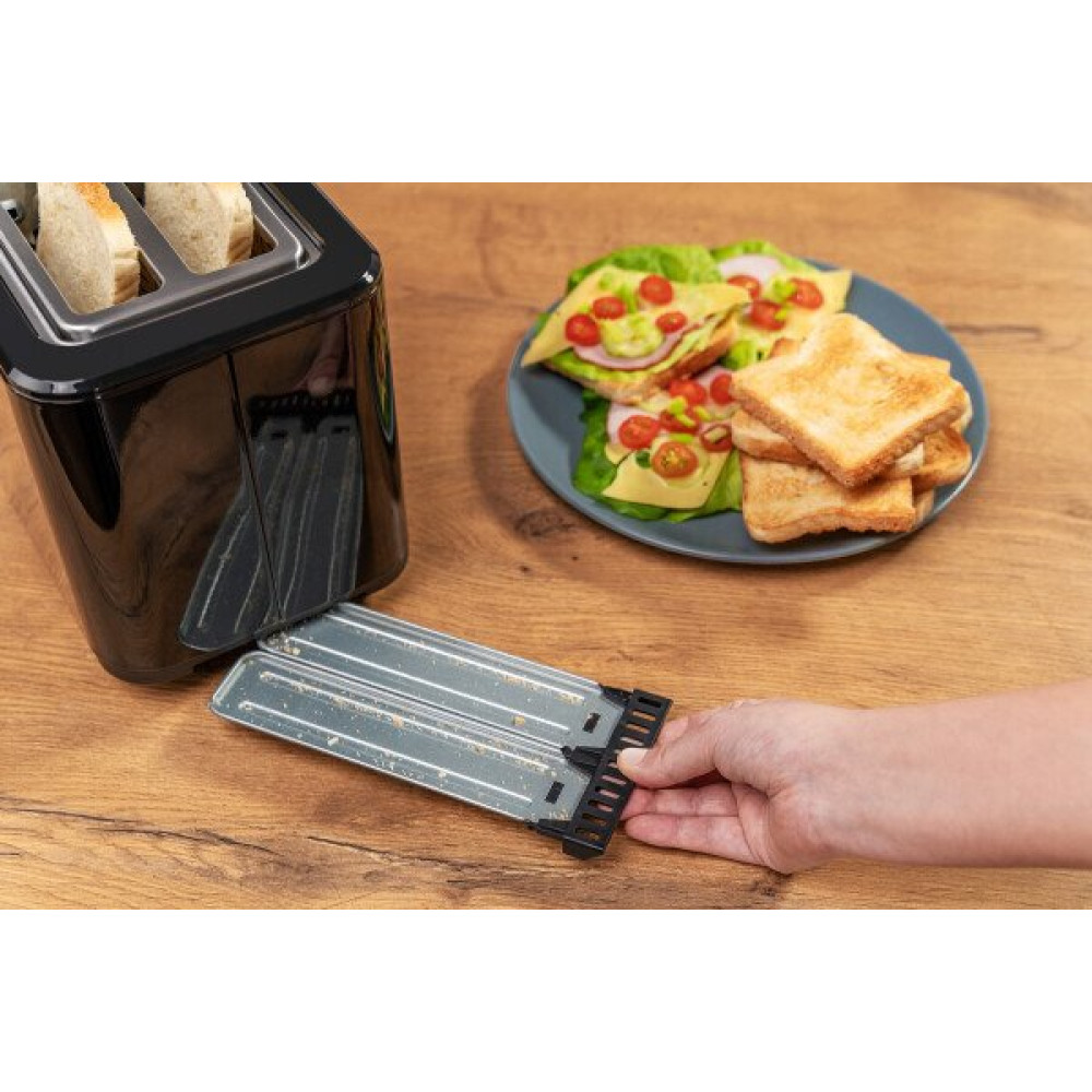 900 Вт, количество тостов: 2, корпус: пластик/металл, решетка для подогрева булочек, 7 степеней обжаривания, цвет черный