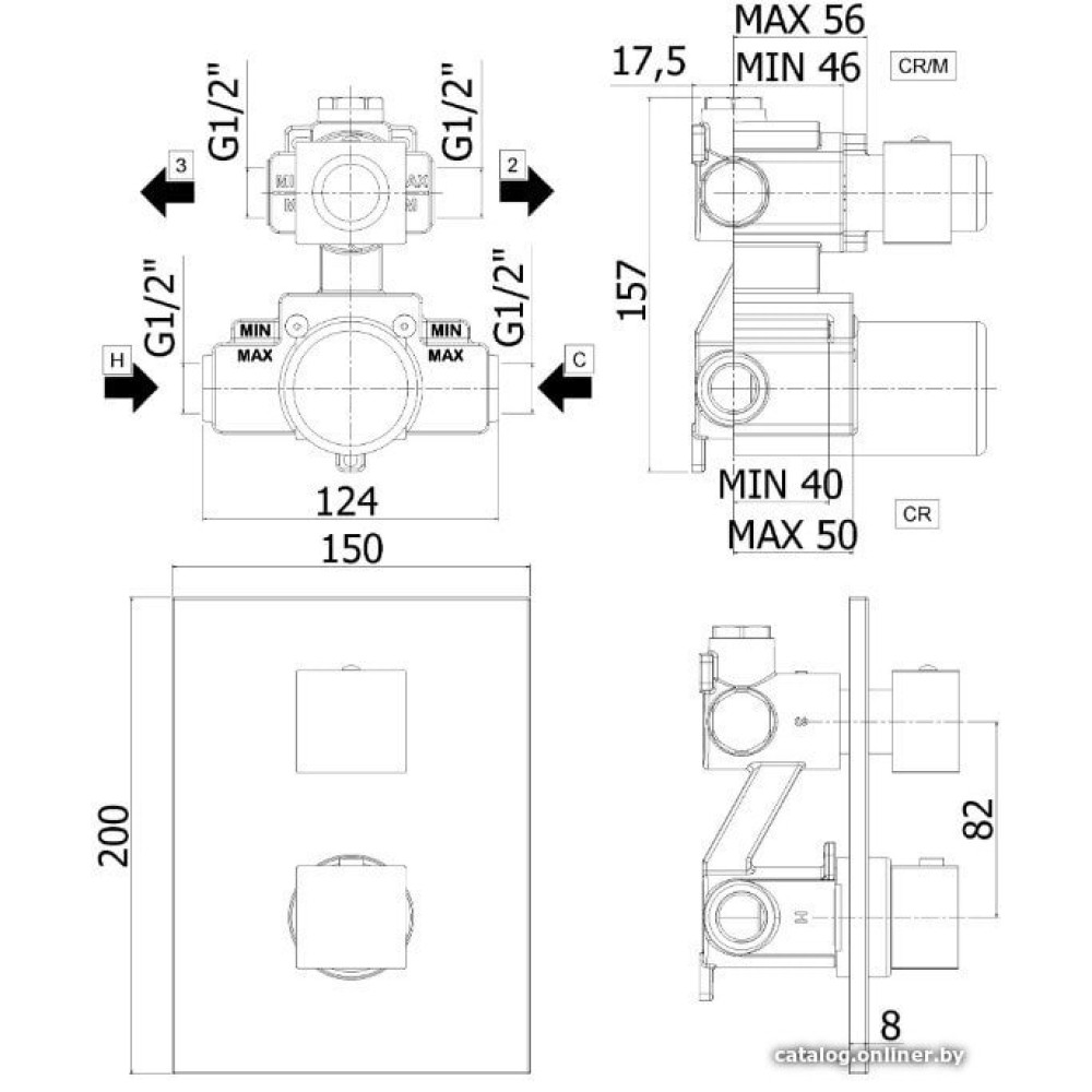 термостатический смеситель для ванны и душа, монтаж скрытый