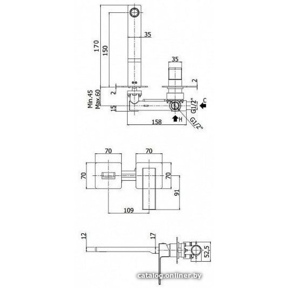 - Длина (вылет) излива150 мм
