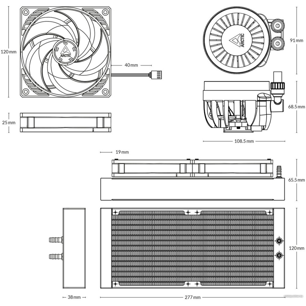типоразмер 240, высота 38 мм, вентилятор 120 мм, 1800 об/мин, PWM, подшипник гидродинамический (FDB)