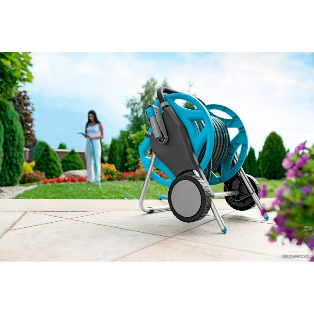 тележка для шланга, металл, голубой/серый