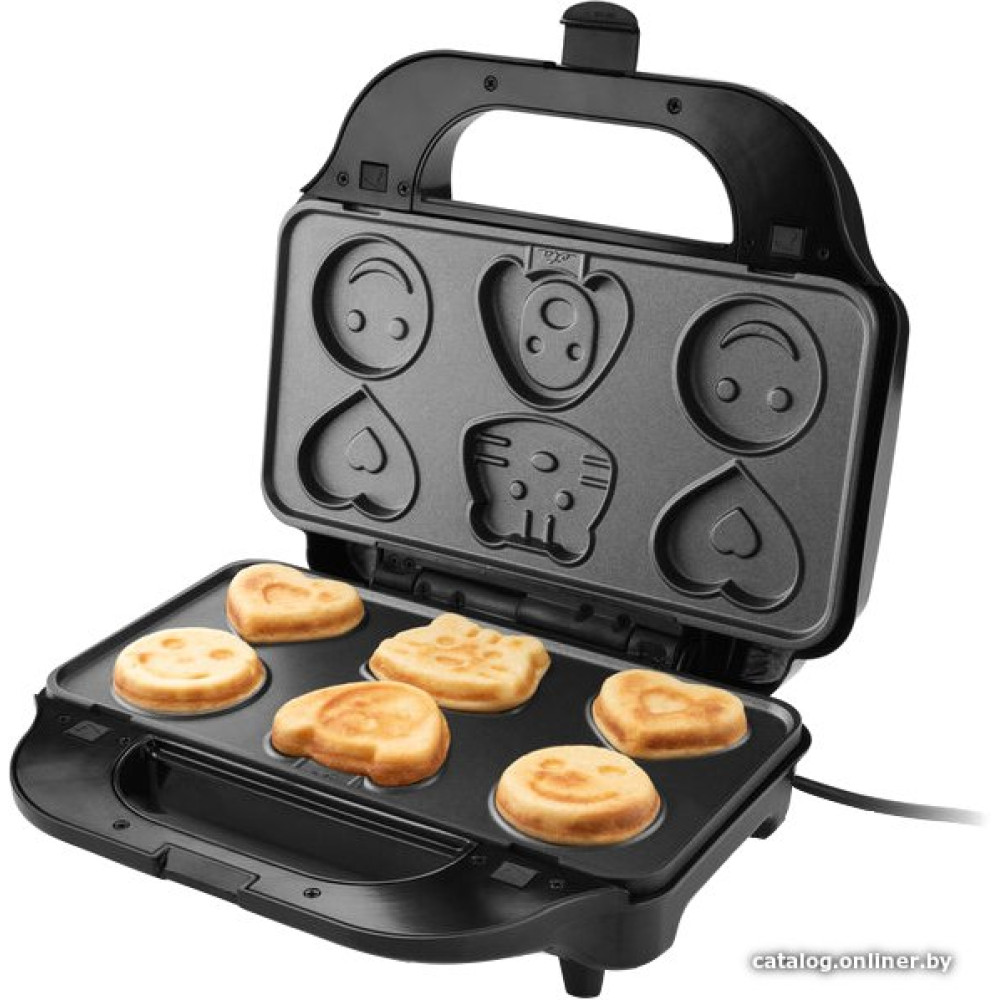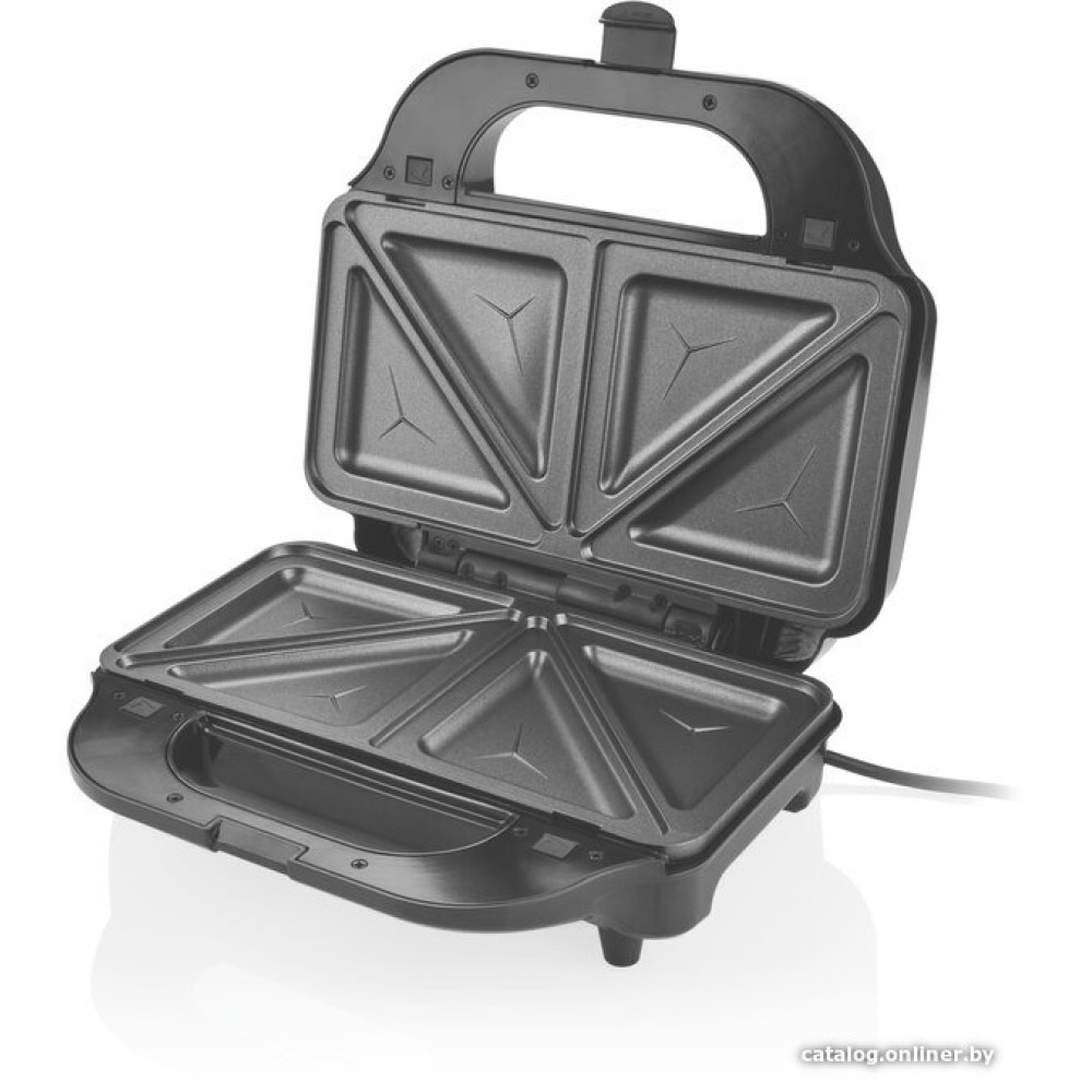 многофункциональная сэндвичница, 900 Вт, поверхность: гриль-пластина/форма для 2 ломтиков хлеба/сковорода/вафельница, съемные плитки, черный