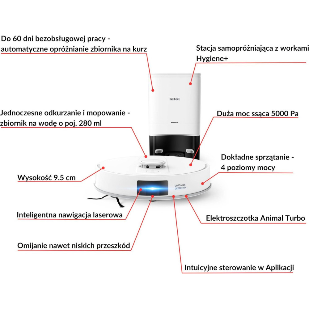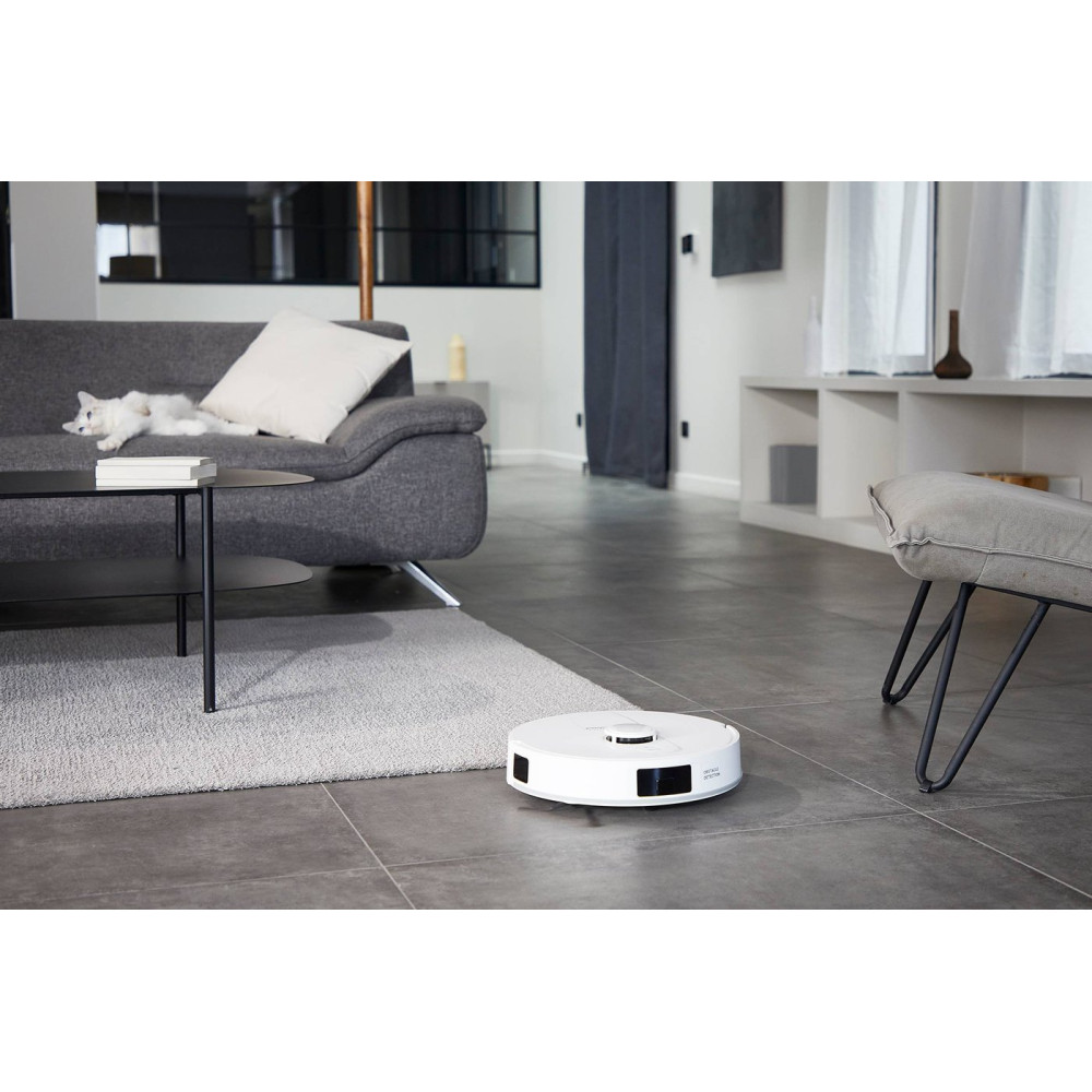влажная уборка, сила всасывания 5000 Па, с турбощеткой, навигация: контактный бампер, лидар, датчики перепада высоты, лазерные датчики препятствий, база самоочистки