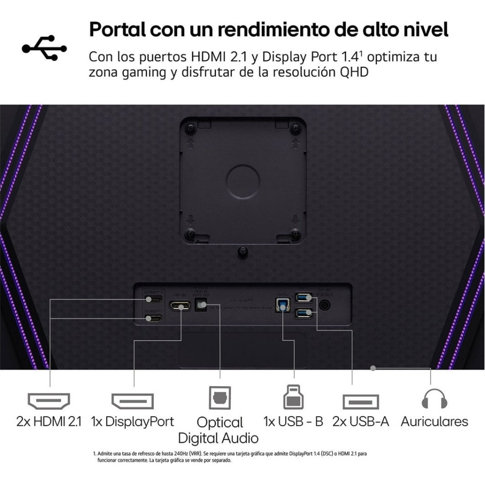 26.5", 2560x1440, 16:9, OLED, 240 Гц, глубина 8 бит + FRC, яркость 275 нит, HDR10, HDMI+DisplayPort, регулировка высоты, портретный режим