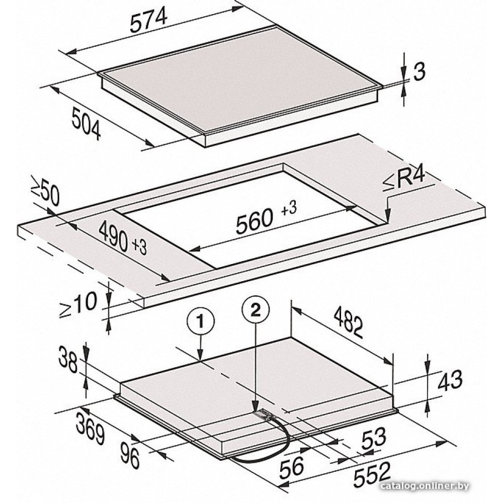 HiLight на 4 конфорки, cтеклокерамика, мощность: 6700 Вт, автоматика закипания, независимая установка, размеры (ШхГ): 57.4x50.4 см