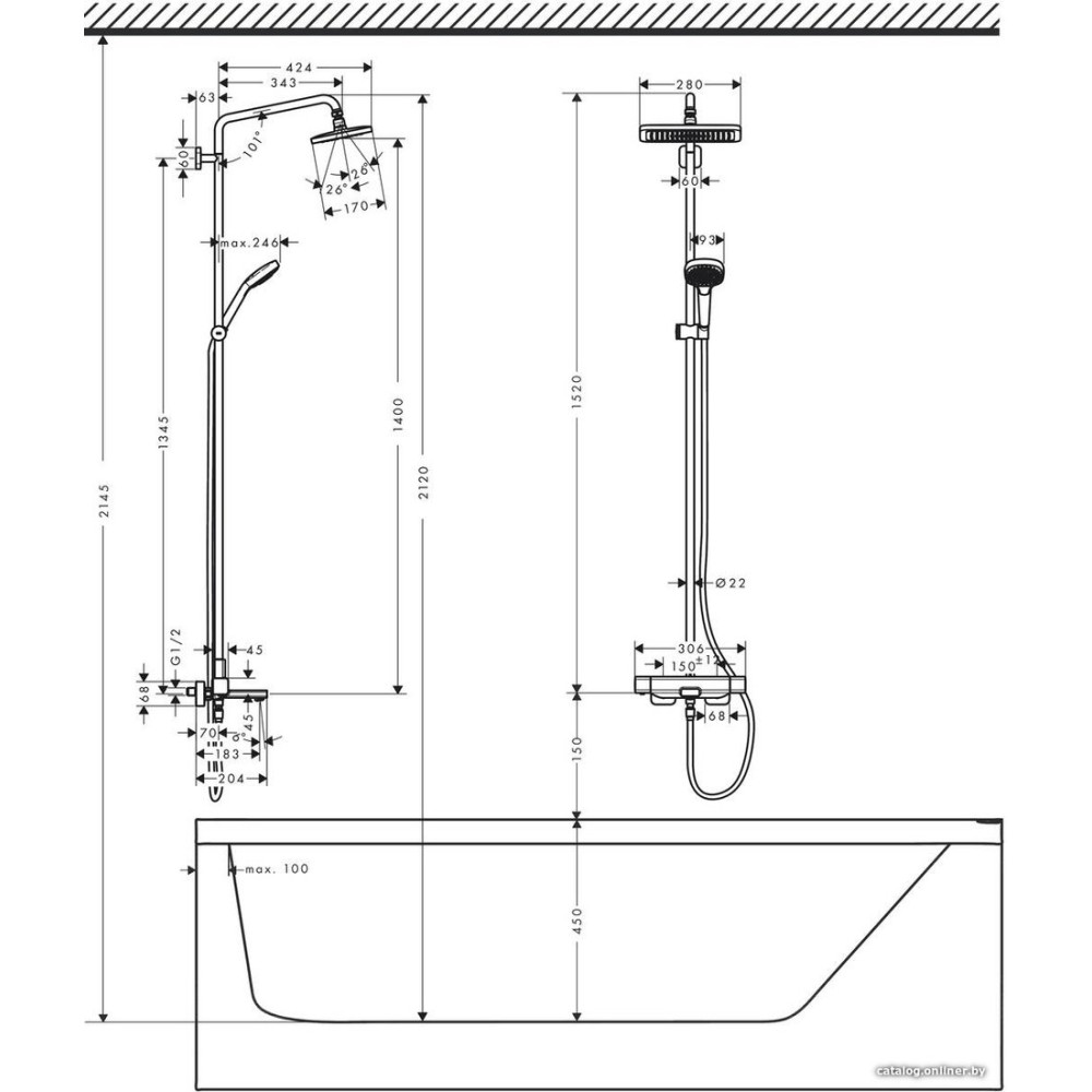 • СерияCroma E Showerpipe 280 1jet (Hansgrohe)