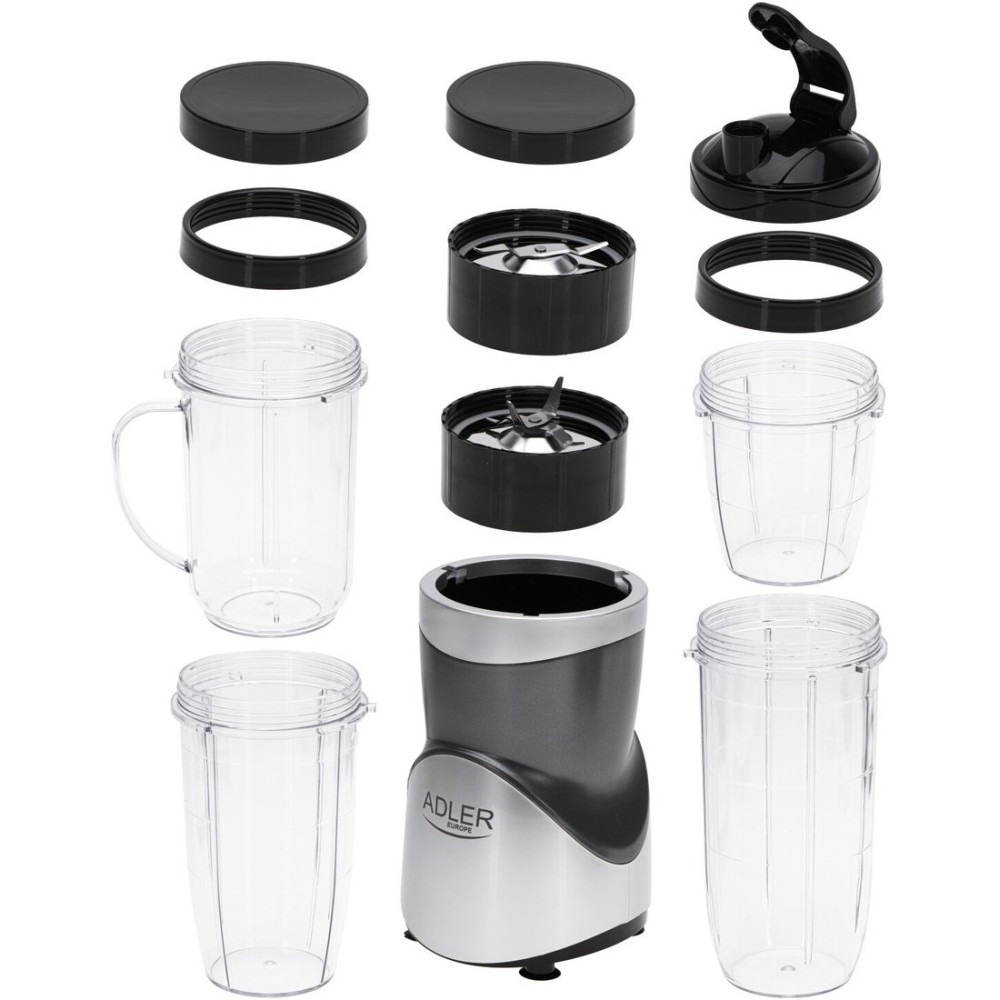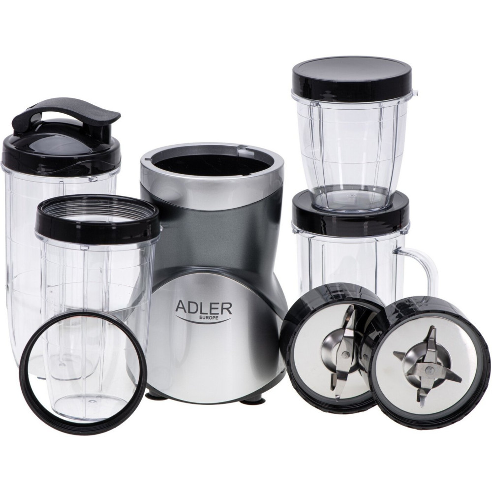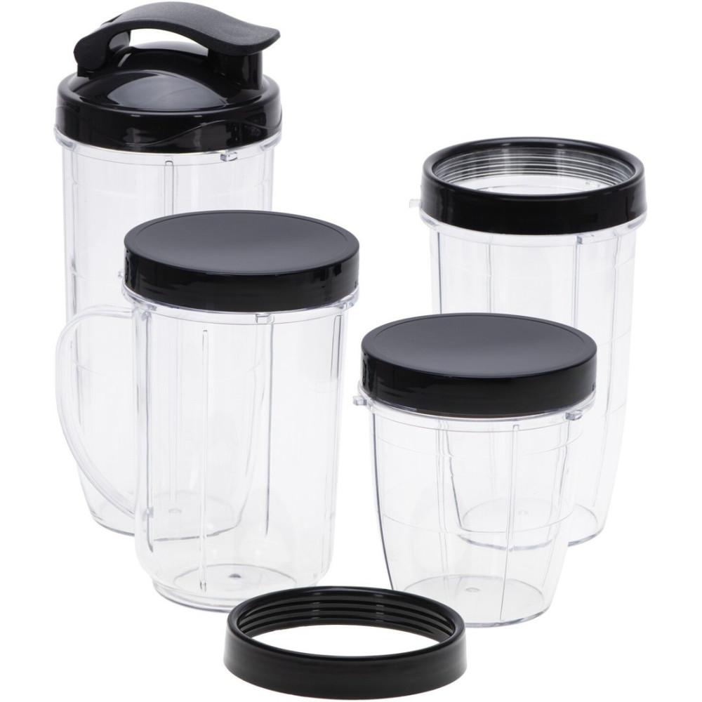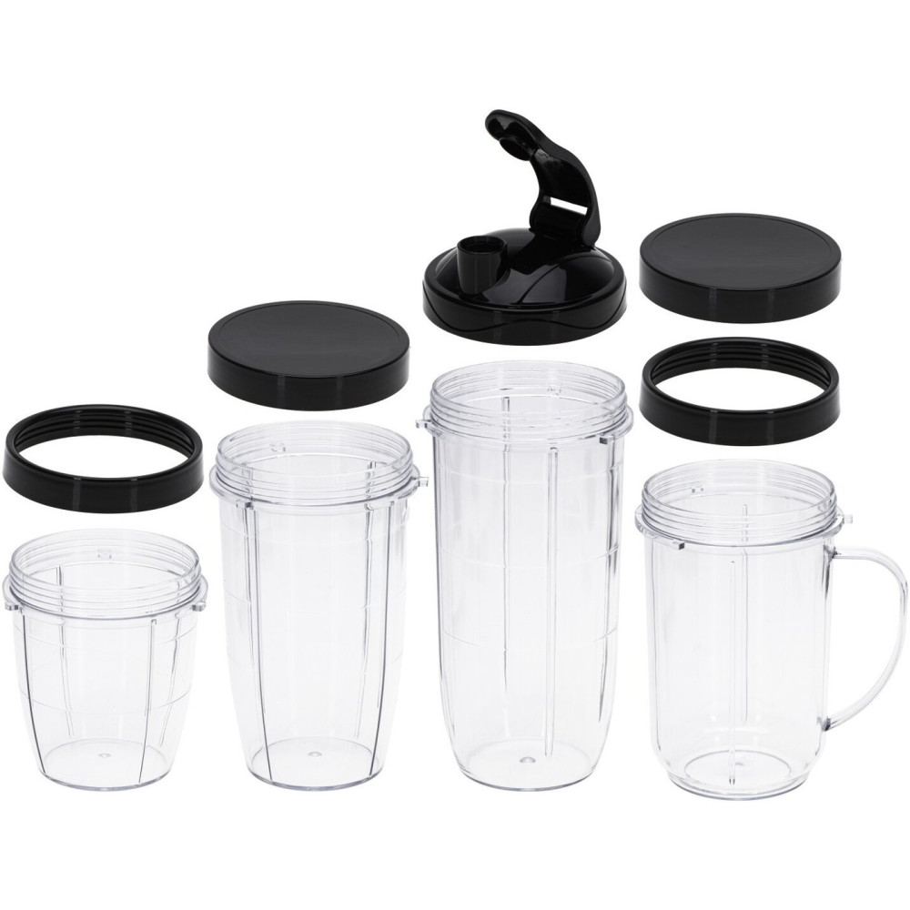 - Комплектациямоторный блок, высокая бутылка 0.7 л, бутылка 0.5 л, кружка с ручкой 0.5 л, короткая бутылка 0.3 л, две крышки, крышка с поильником, два ободка для бутылок, основной нож для смешивания и колки льда, нож для помола, инструкция
