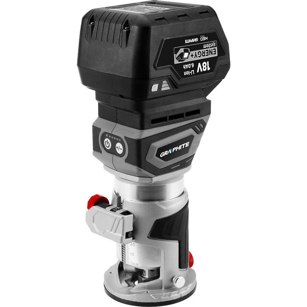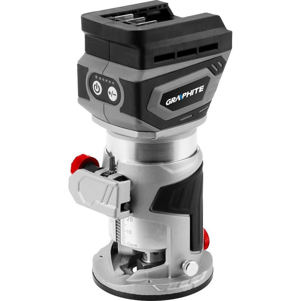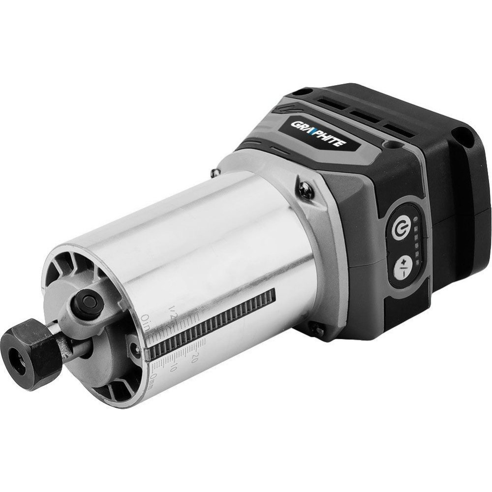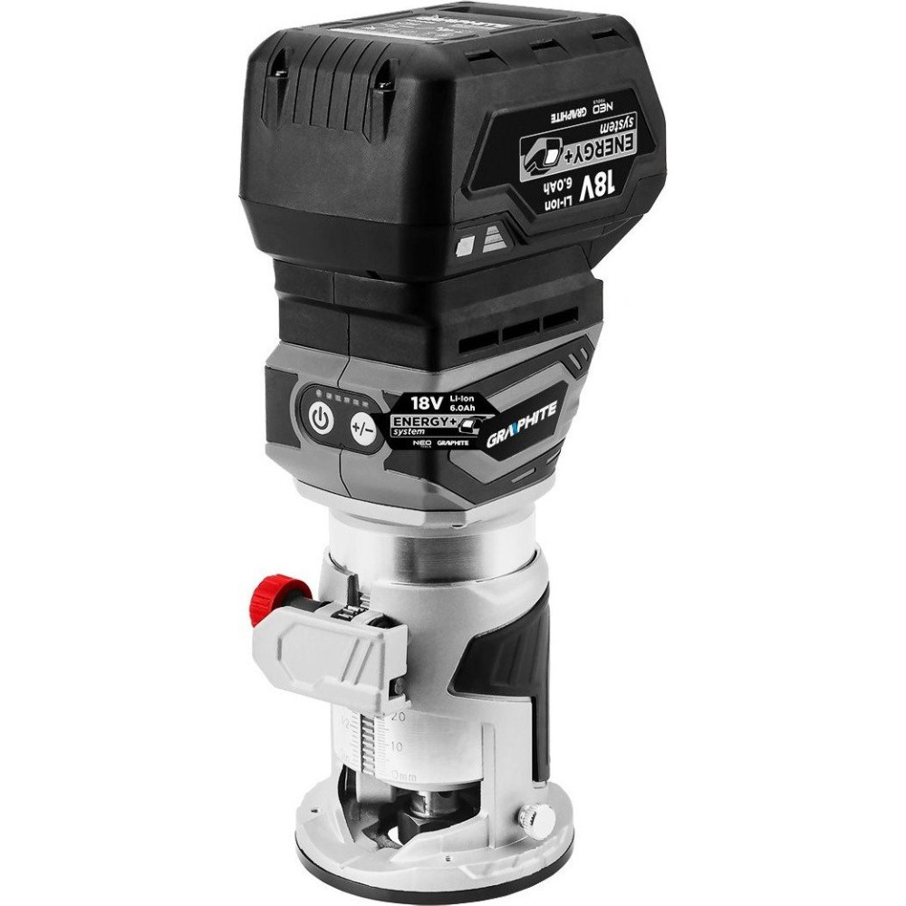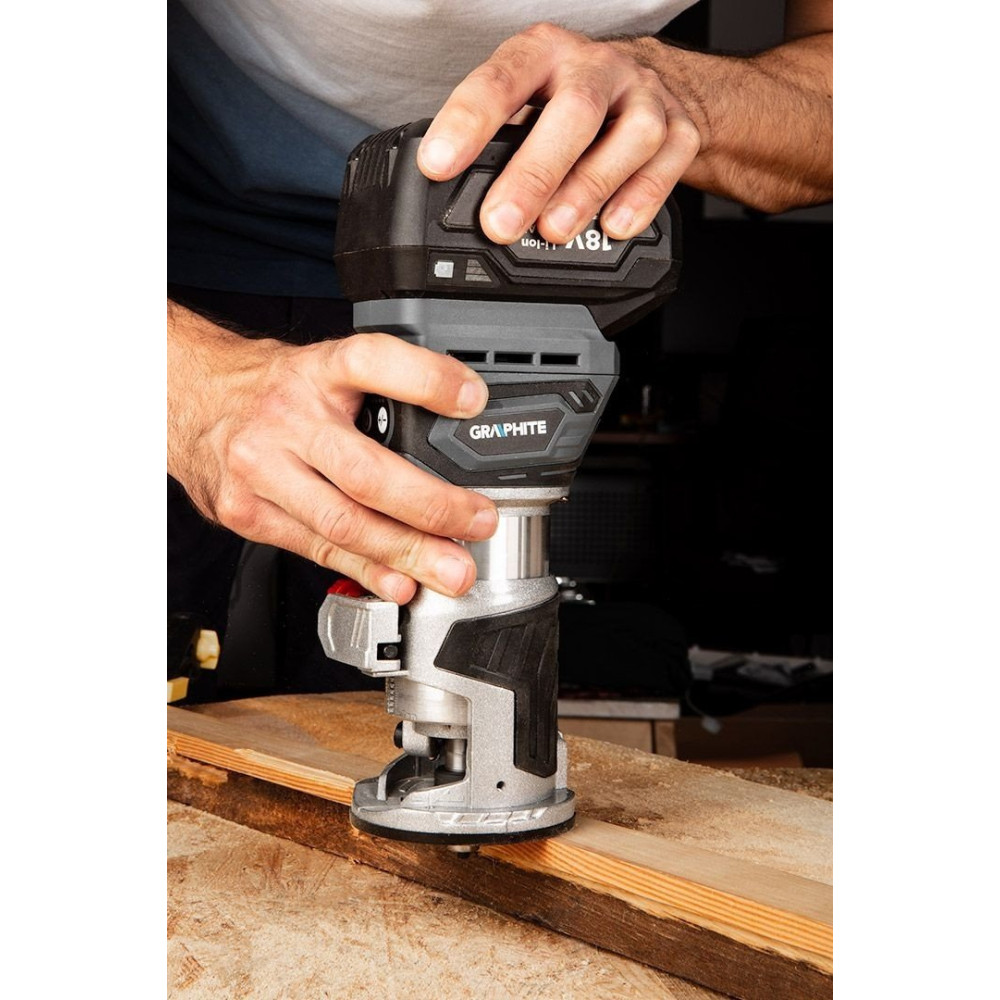 - Комплектация- аккумуляторный бесщеточный фрезер GRAPHITE, - цанга, - пылеотсос, - угловой рычаг, - гаечный ключ, - параллельная направляющая.