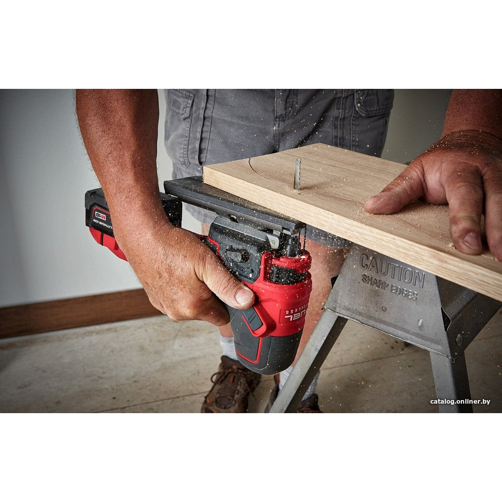 грибообразная рукоятка, питание: аккумуляторный (18 В), без аккумулятора в комплекте, глубина пропила: 100 мм (дерево), 10 мм (сталь), 800–3500 ходов/мин, ход пилки: 25 мм, 2.5 кг