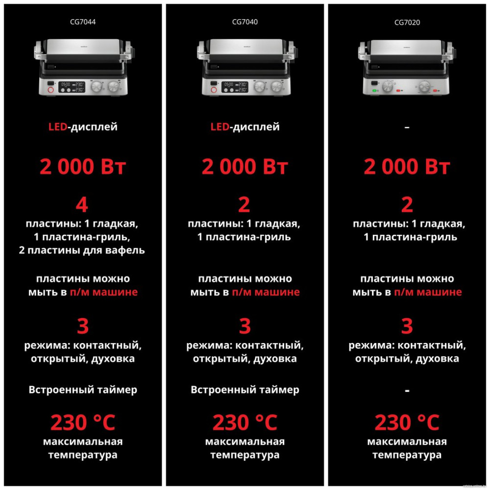 2000 Вт, универсальный, двухсторонний (гриль-пресс), габариты 315x365 мм, рабочая поверхность 290x230 мм