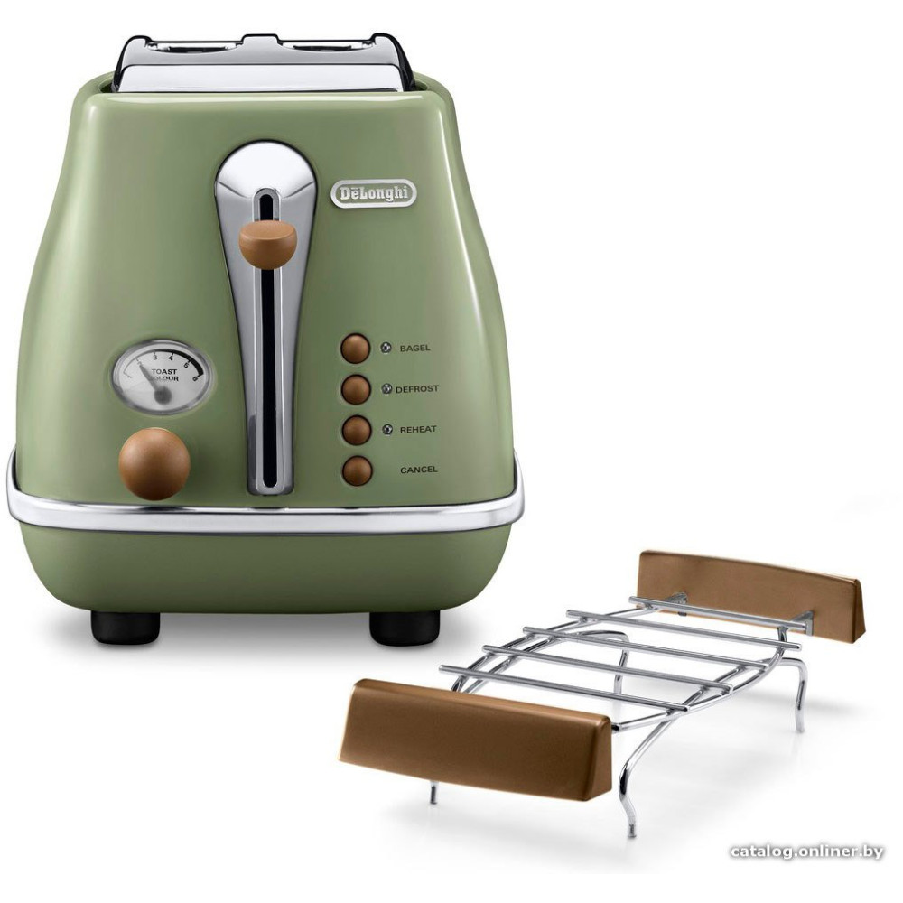 900 Вт, количество тостов: 2, корпус: металл, решетка для подогрева булочек, 6 степеней обжаривания, цвет салатовый