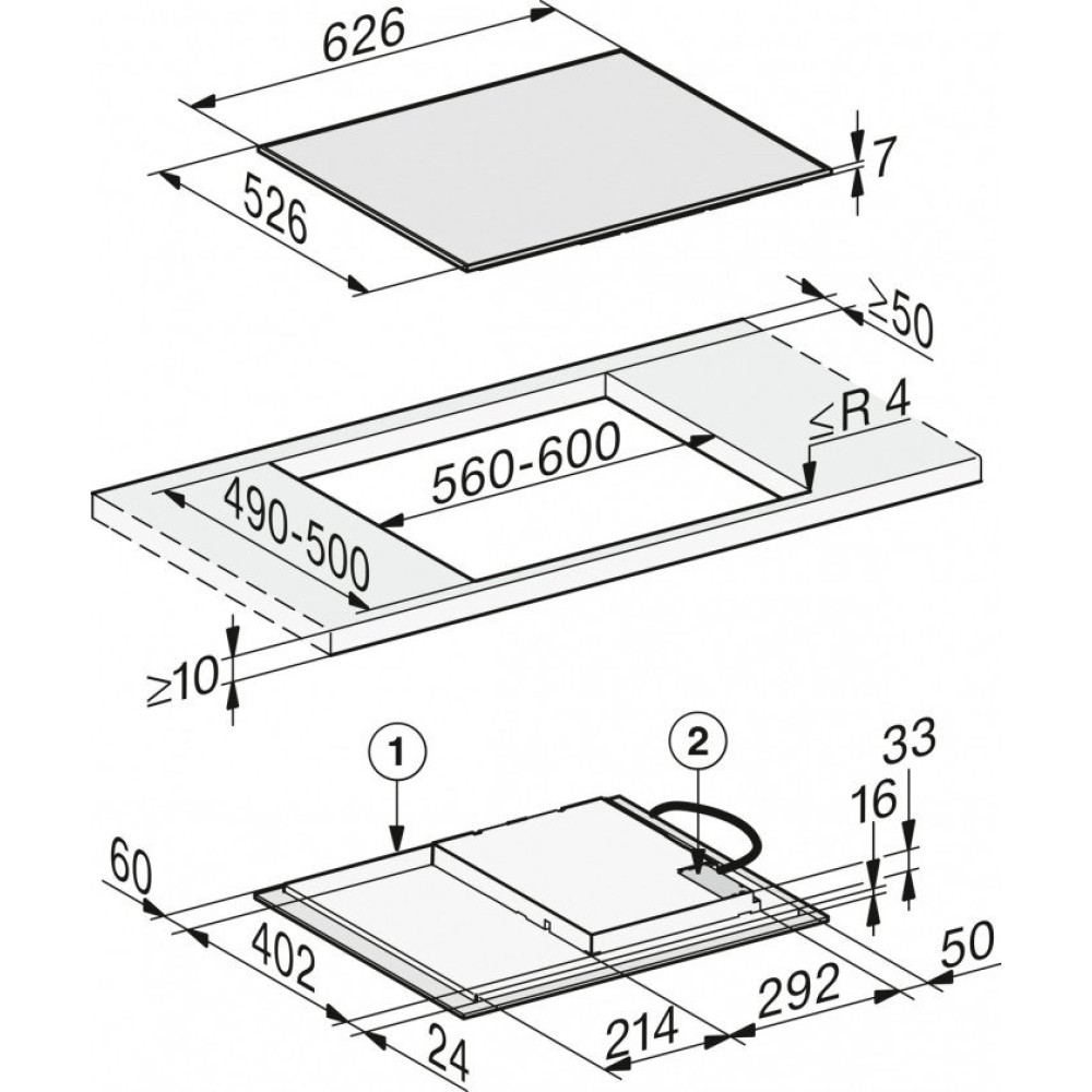 индукционная на 4 конфорки, cтеклокерамика, мощность: 7300 Вт, автоматика закипания, независимая установка, размеры (ШхГ): 62x52 см