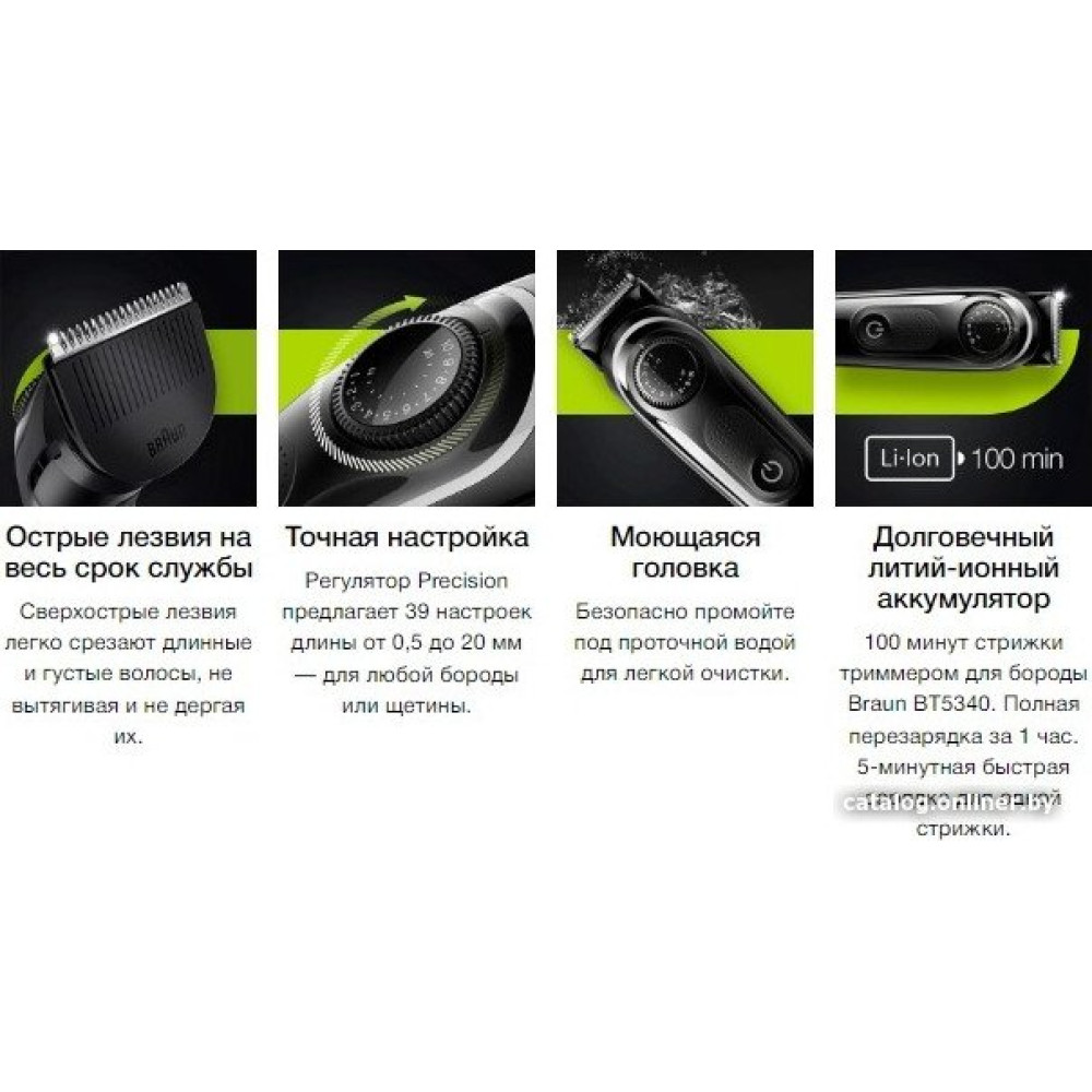для бороды и усов, длина стрижки: 0.5-20 мм, питание от аккумулятора, автономная работа: 100 мин, водонепроницаемый корпус