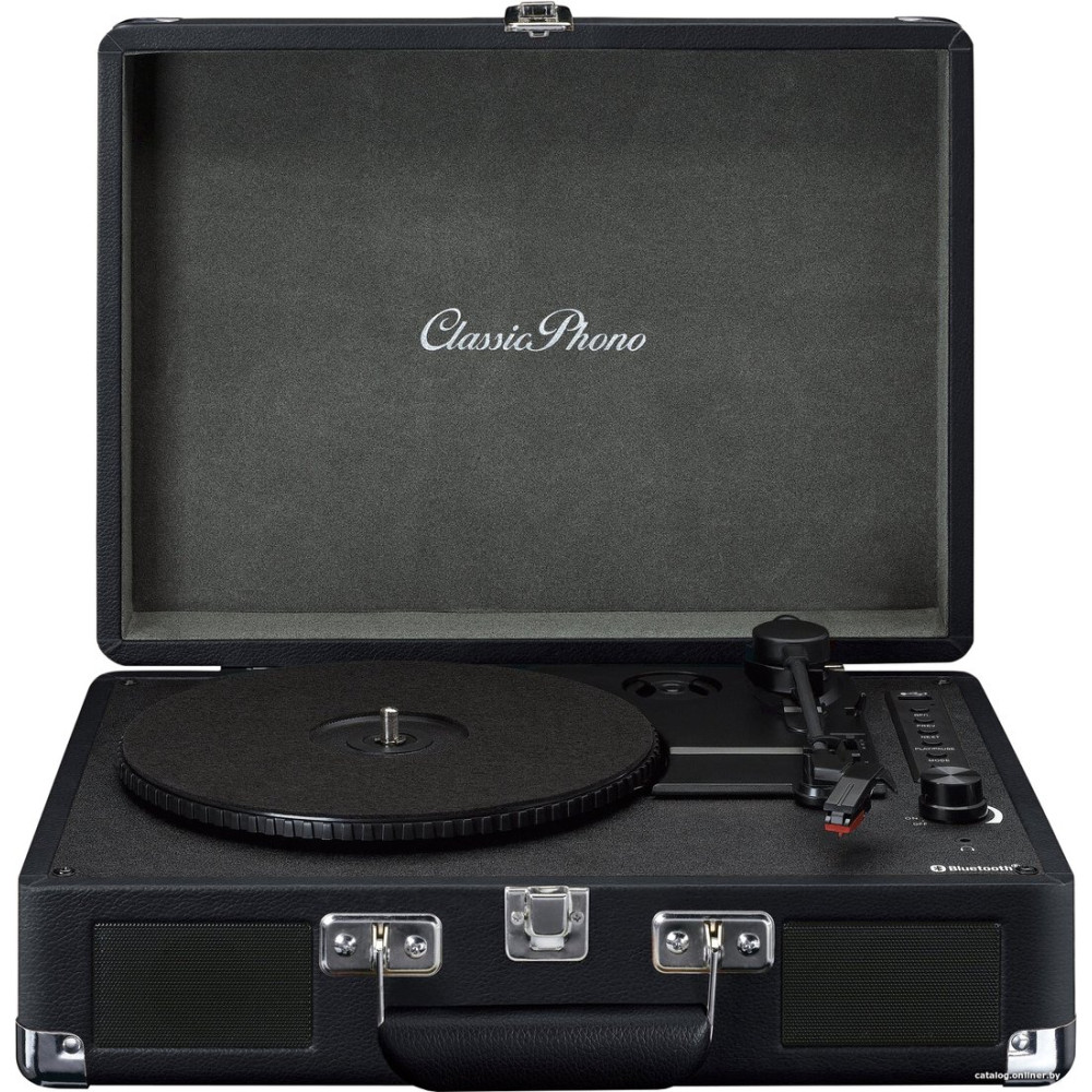 ременной привод, 33 1/3, 45 и 78 об/мин, ручное переключение скоростей, встроенный фонокорректор, тонарм поворотный (прямой), картридж, цвет черный