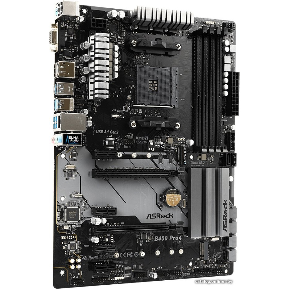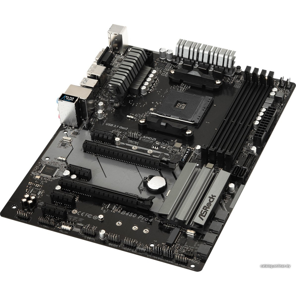 ATX, сокет AMD AM4, чипсет AMD B450, память 4xDDR4, слоты: 2xPCIe x16 3.0, 2xM.2