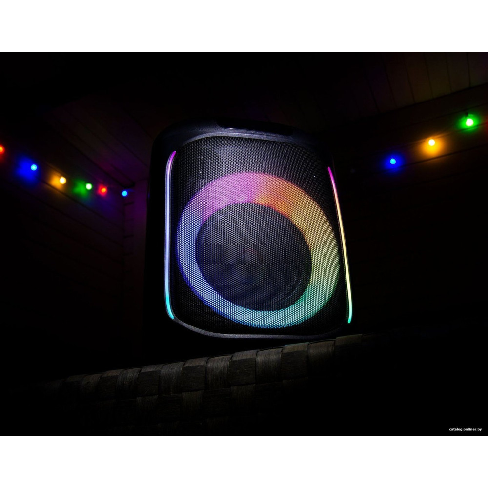 номинальная мощность 100 Вт, воспроизведение с USB, питание от сети и аккумулятора, BT 5.0, AUX, влагозащита IPX4, время работы: 14 ч.